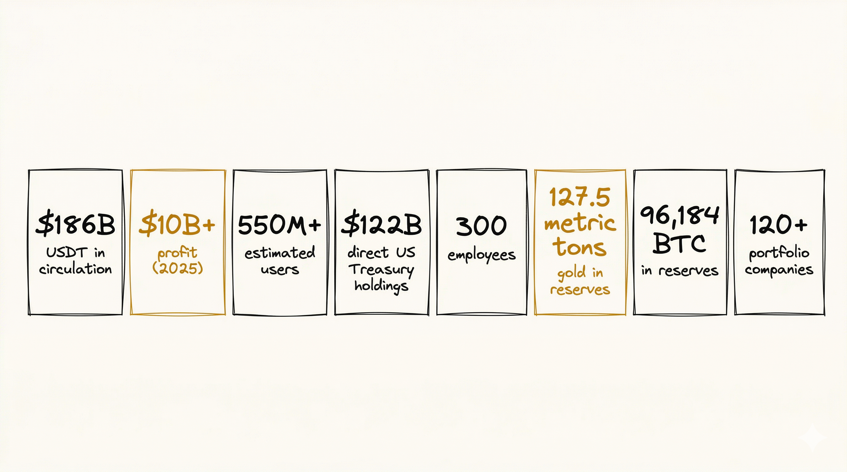 The rest comes from gold (127.5 metric tons in reserves at year-end, with Ardoino indicating the position grew to approximately 140 tons by early 2026), Bitcoin (96,184 BTC), and a growing portfolio of venture investments and commodity positions.